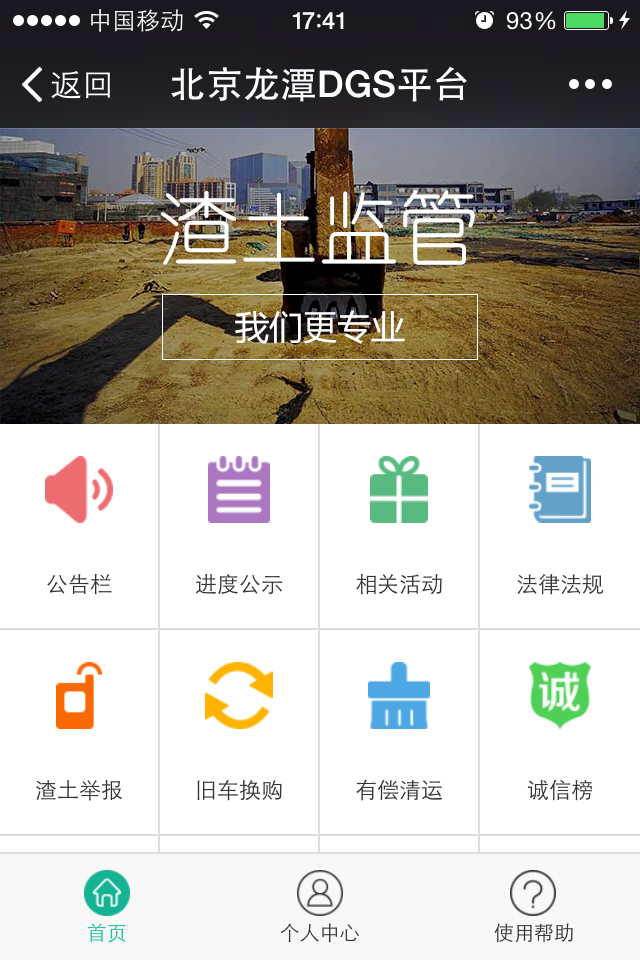 渣土工程微信管理平臺(tái)由北京市東城區(qū)人民政府龍?zhí)督值擂k事處創(chuàng)建和管理,主要功能:辦事處監(jiān)管轄區(qū)裝修垃圾清運(yùn)并建立清運(yùn)信用體系;居民登記舊自行車(chē)換購(gòu)和大件舊家具清運(yùn)需求,辦事處為其提供相關(guān)服務(wù);居民公示裝修建材轉(zhuǎn)讓或需求信息,建立物品循環(huán)空間。