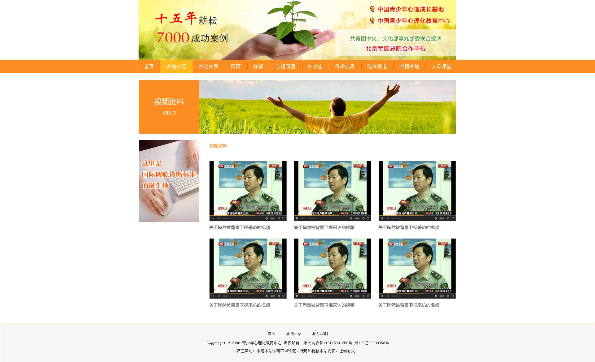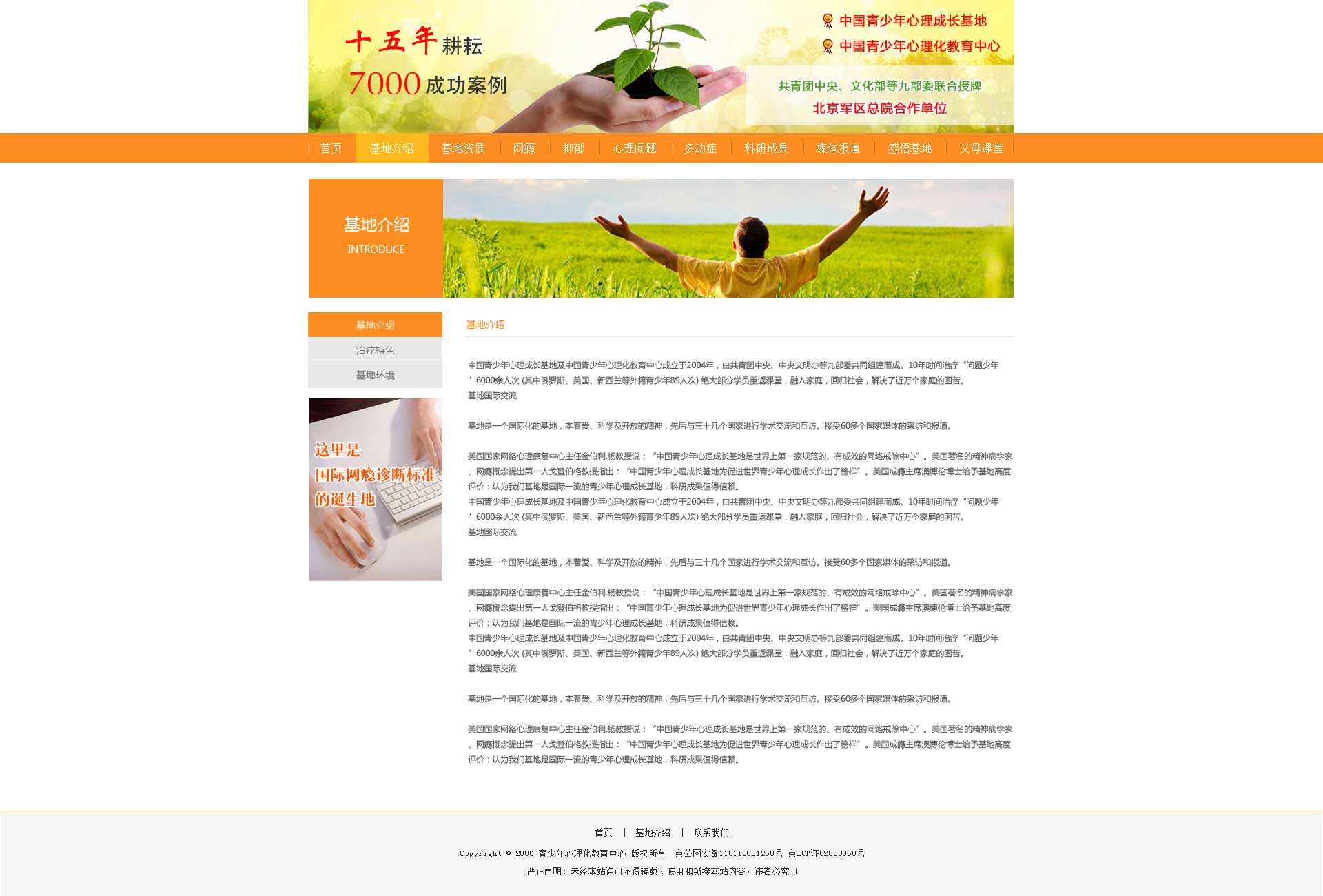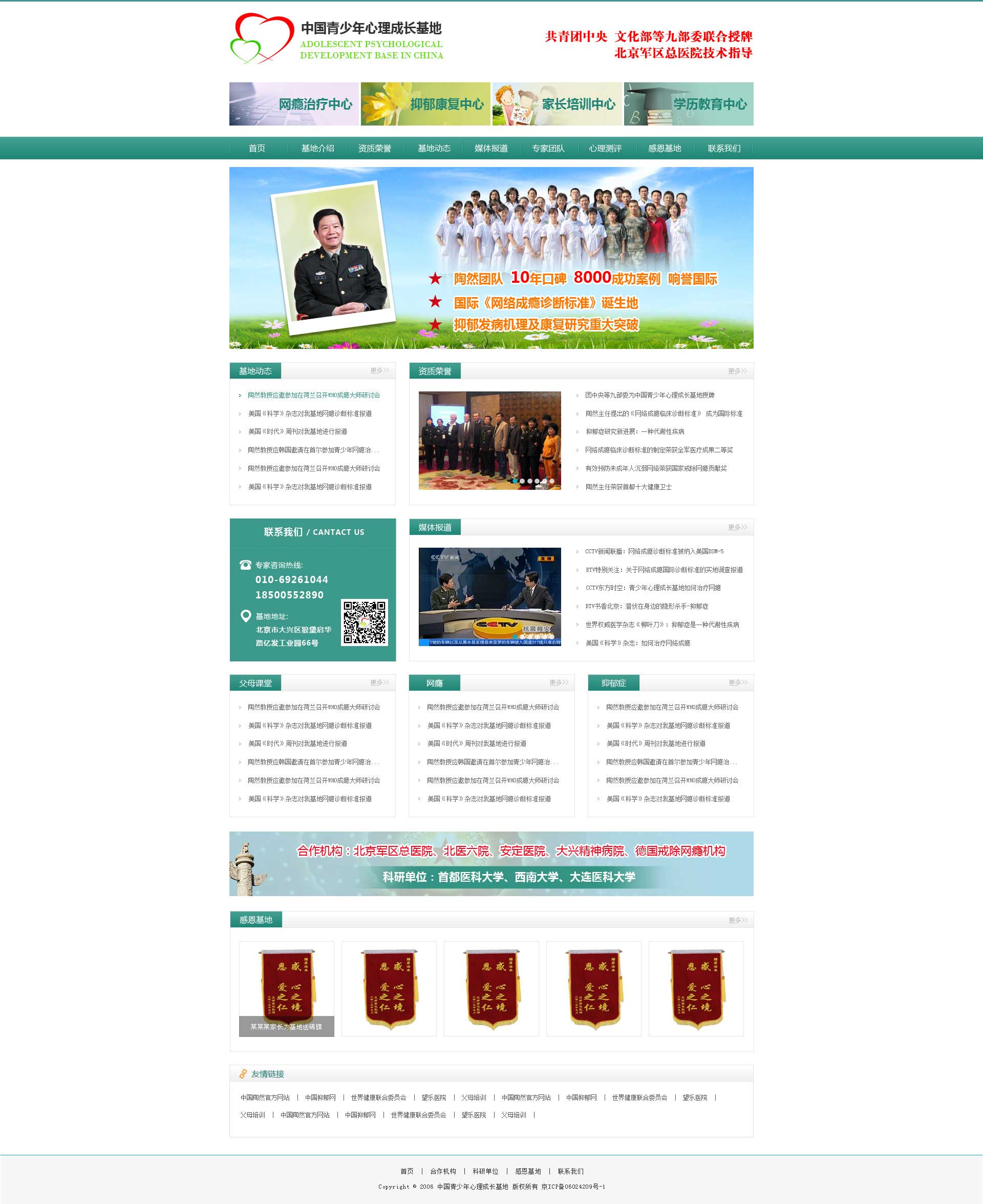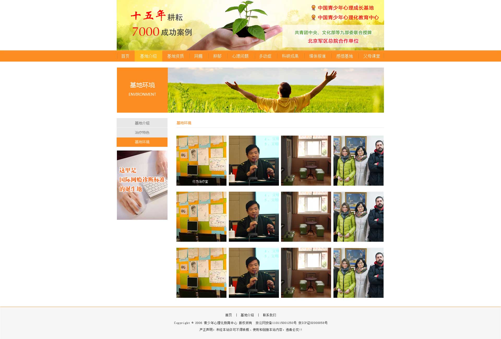 中國青少年心理成長基地致力于青少年網(wǎng)絡(luò)成癮、抑郁癥、自閉癥等各種心理及行為問題的康復(fù)與研究。