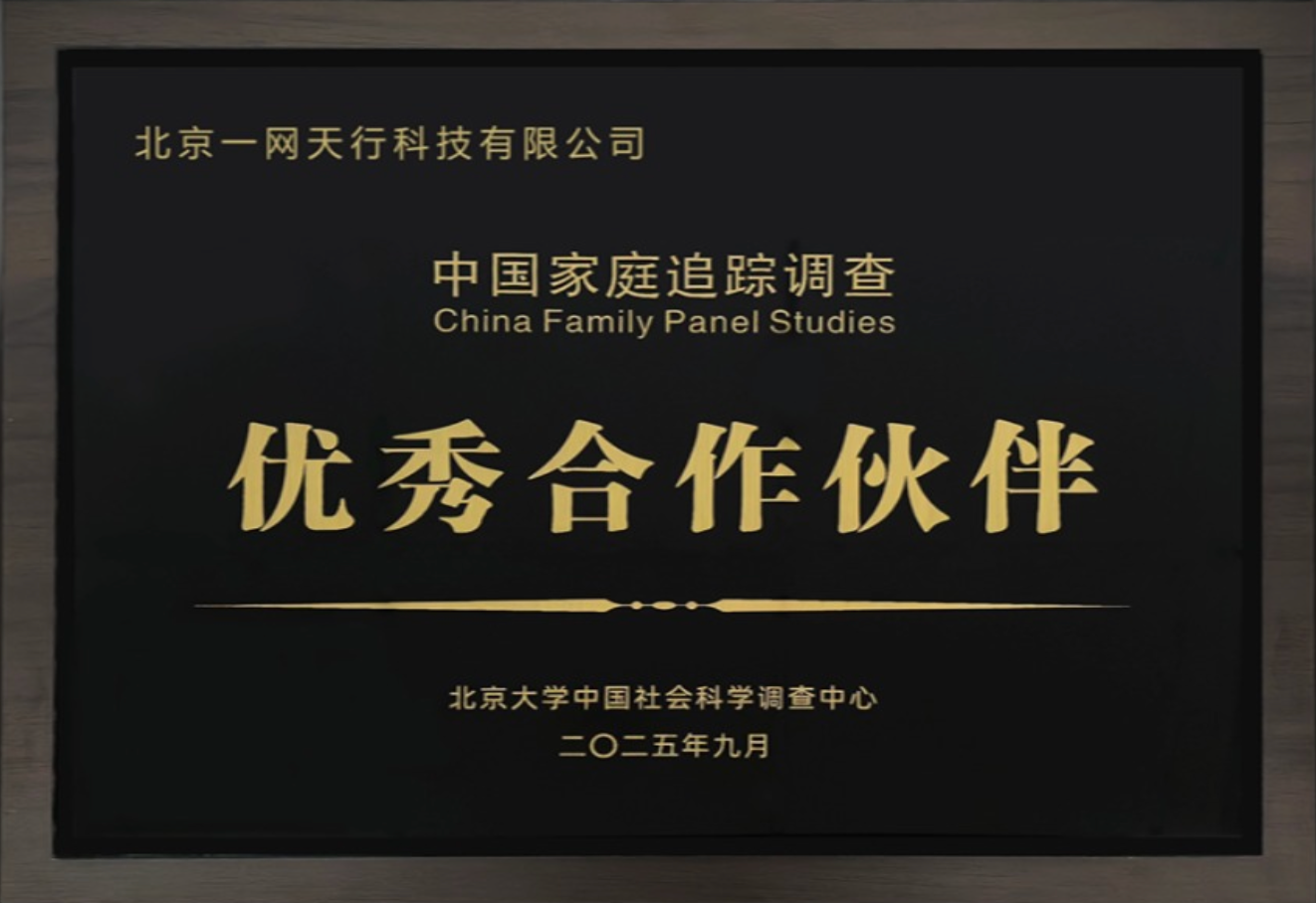 近日,北京一網(wǎng)天行科技有限公司榮幸獲得北京大學(xué)中國社會科學(xué)調(diào)查中心頒發(fā)的“優(yōu)秀合作伙伴”榮譽授牌,以表彰我司在中國家庭追蹤調(diào)查(China Family Panel Studies, CFPS) 項目中的卓越貢獻與持續(xù)支持。