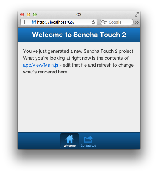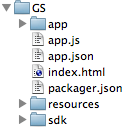 2.[INFO] Created file /Users/nickpoulden/Projects/sencha/GS/.senchasdk3.[INFO] Created file /Users/nickpoulden/Projects/sencha/GS/index.html4.[INFO] Created file /Users/nickpoulden/Projects/sencha/GS/app.js5....這將會產生一個叫做GS的Sencha Touch應用骨架,放在../GS目錄下。骨架應用中包含了所有你創(chuàng)建一個Touch應用所需要的東西,包括默認的index.html,一份Touch SDK的拷貝,CSS,圖片和打包你的應用所需的配置文件。